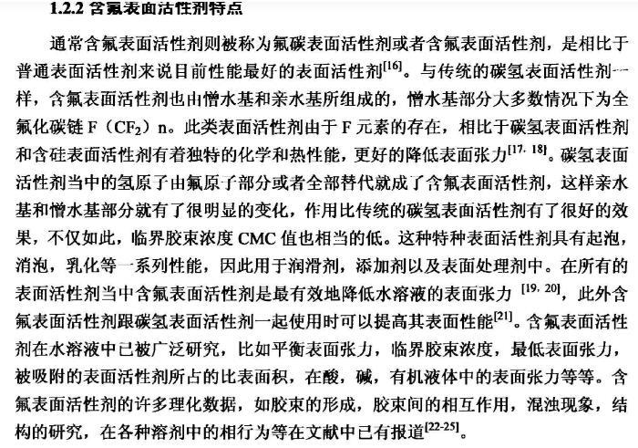【摘要】:本論文首先對(duì)新型含氟表面活性劑的特性,應(yīng)用領(lǐng)域,國(guó)內(nèi)外研究進(jìn)展進(jìn)行了全面的綜述。含氟表面活性劑是目前最受青睞的特種表面活性劑,相比于傳統(tǒng)的碳?xì)浔砻婊钚詣砻婊钚詣┑挠昧可?,降低水溶液表面張力的作用?qiáng),同時(shí)可以跟其它表面活性劑起到很好的復(fù)配效果,可以應(yīng)用于消防、鉻霧抑制劑、造紙、冶金、起泡與消泡劑的合成等很多領(lǐng)域。