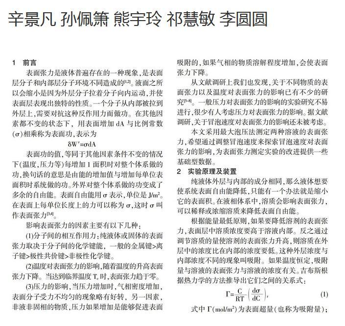 表面張力測定實驗的改進——冒泡速度對其影響的初探