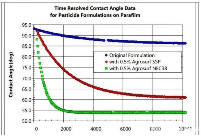 農藥中加入表面活性劑可以降低液體的表面張力提高潤濕分散性能