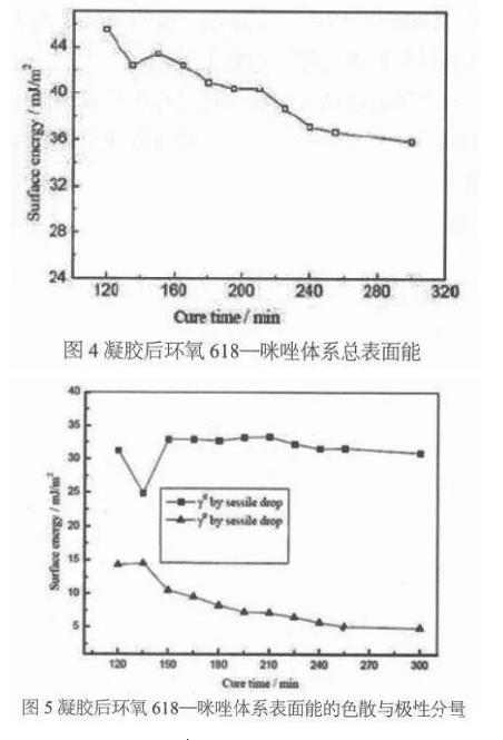 因此作者推斷環(huán)氧618-咪唑體系固化反應(yīng)120min之后表面能極性分量的降低是由于羥基關(guān)能團(tuán)和環(huán)氧官能團(tuán)的變化引起。