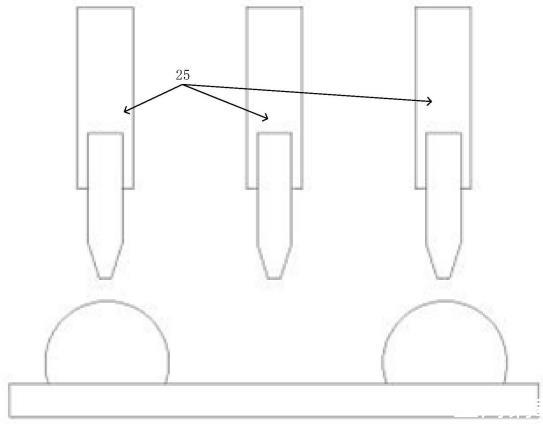 步驟S3:通過印刷機構(gòu)將摻入碳粉并通入正電荷的UV油墨鋪滿在紙張上,由于紙張上已覆蓋有固化的UV涂層,因此UV油墨在紙張上仍可自由移動,此時通過計算機處理印刷圖案,進而控制印刷機構(gòu)向指定金屬探針輸送負電荷,其余金屬探針輸送正電荷,當金屬探針接觸帶正電荷UV油墨時,通過異電荷相互吸附的原理,UV油墨將向金屬探針聚攏;其余探針通過同電荷相互排斥的原理,UV油墨將向金屬探針反方向逃逸,待金屬探針收回,UV油墨將因表面張力短時間內(nèi)無法流平,再對紙張表層所有UV油墨進行最終固化;