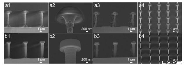 但是,現(xiàn)有技術中制備得到的雙內凹結構尺寸均在幾十微米以上,雖然能夠實現(xiàn)低表面張力液體的超排斥,但這種排斥性極不穩(wěn)定,如空氣流動或者液滴自身運動都會導致液體塌陷并濕潤固體表面。